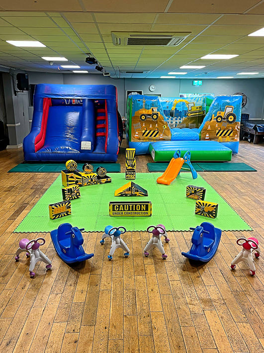 This fab package is a perfect choice for any child into Diggers, Dumpers, Excavators and Bulldozers. Our Construction themed soft play set has great artwork showing different vehicles to excite any child into Construction Vehicles. We have introduced this PREMIUM Package which now includes the choice of bouncy castle and inflatable slide to cater for larger parties.