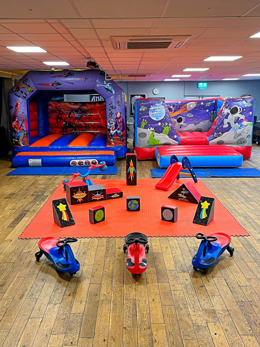 Space soft play and bouncy castles are a popular choice with young children for 3rd, 4th and 5th birthday parties or any family gathering. This fab Package comes complete with a our Space themed soft play, see saw, slide, didi car ride ons and a choice of bouncy castles to provide hours of fun for any Space fans.