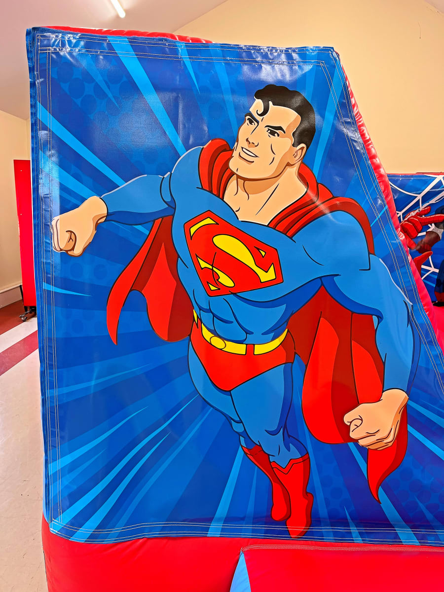 SUPERHERO Themed Bouncy Castle - V Front Low Height Bouncy Castle Hire