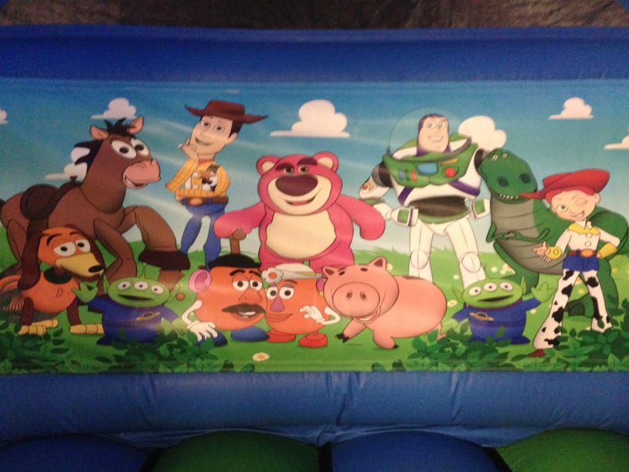 This themed bouncy castle is part of our Interchangeable Velcro Themed Artwork range. This means when you choose your themed bouncy castle artwork, you then choose which size and style base unit you require. But don’t worry, our delivery guys will set is all up for you!