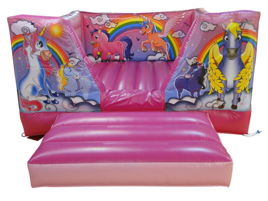 Little girls love unicorns, mythical winged horses and rainbows. So what could be better than to have a bouncy castle with unicorns and more.