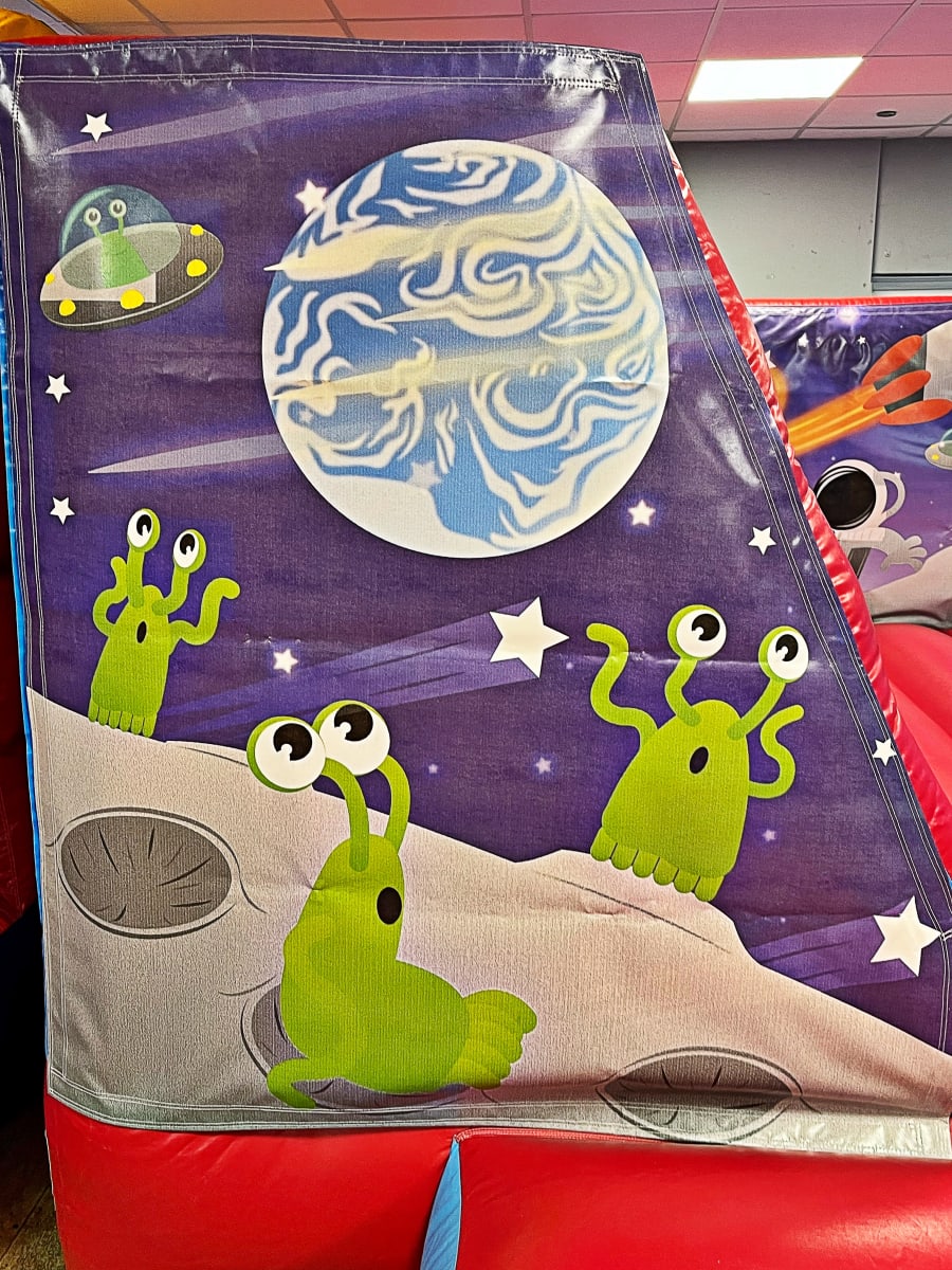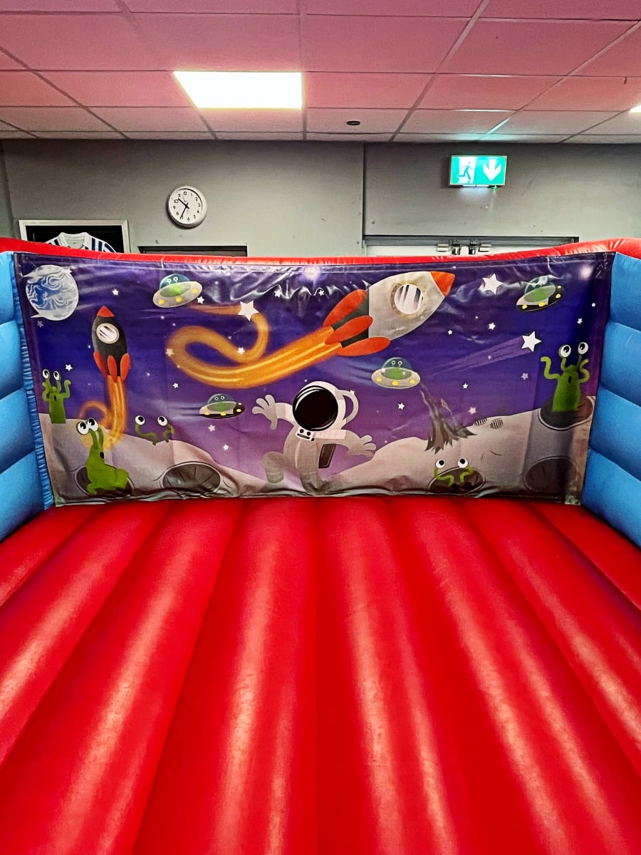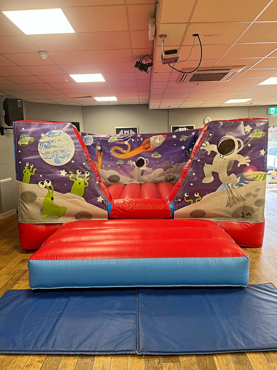 SPACE THEMED BOUNCY CASTLE - V FRONT LOW HEIGHT BOUNCY CASTLE HIRE ESSEX