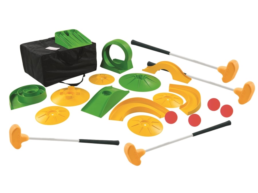 The 9 Hole Mini Golf set is ideal for children and beginners and is completely safe. Thanks to its easy grip handles anyone using the club will be able to swing the putter correctly in order to hit the ball with precision.