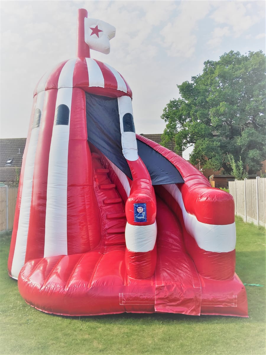 Hire this traditional Helter Skelter Slide for birthday parties, corporate events, fun days or bbq's. Compact enough to fit in most medium to large gardens and if height permits can go inside a hall.