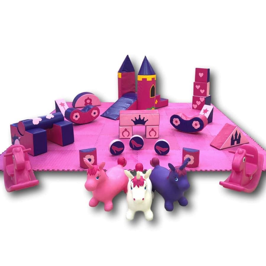 The Princess Soft Play set 1 is available to book as a PACKAGE which includes a choice of pink or princess themed bouncy castle making this a perfect party choice if you have older children attending the party. View our full PRINCESS RANGE if looking to hire this set with a choice of bouncy castle in a hall.