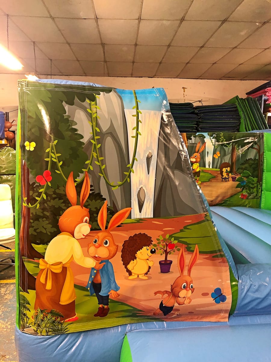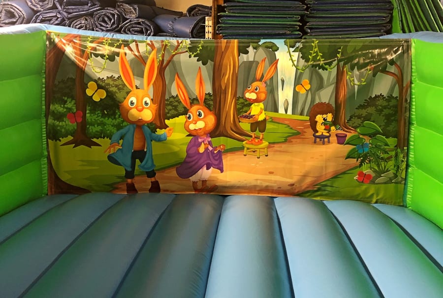 Hire our Pete Rabbit Soft Play, Ball Pit & Bouncy Castle package for your 1st, 2nd, 3rd birthday party or christenings. When you hire this Pete Rabbit themed package you will get the full set up including soft play, bouncy castle and matching ball pit is which is great for all your little guests.