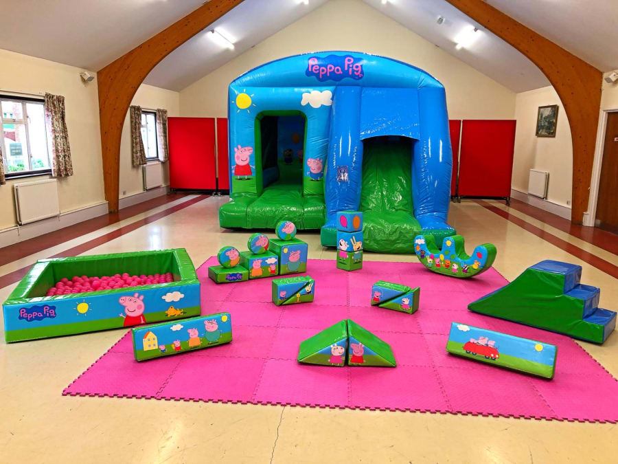 This package consists of our Peppa Pig Soft Play set and an Peppa Pig themed Bounce n Slide