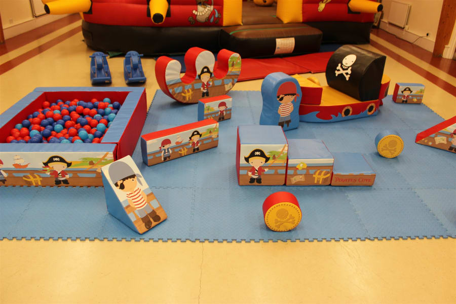 Ships ahoy! This great Pirate themed Soft Play package consists of a fabulous Build n Play Pirate Ship with pirate character, 12 Pirate theme soft play shapes, a matching soft double rocker, plus 2 Little Tikes Rockers. Together with an inflatable Pirate themed Bounce n Slide and a choice of Pirate themed bouncy castle.