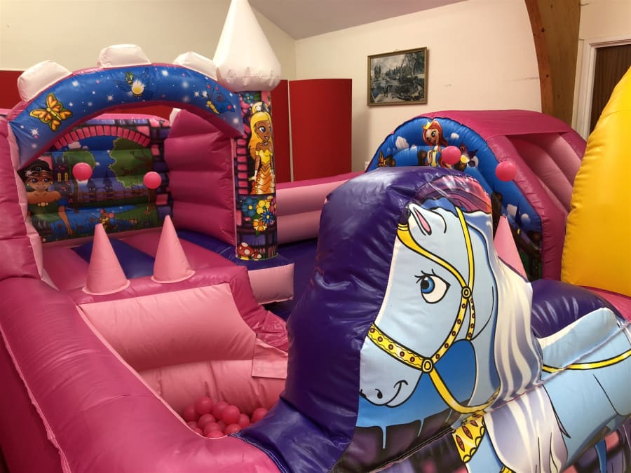 Enter through the horse drawn carriage in our Princess Kingdom Playpark which is a multi activity unit comprising of a bounce area, a ball pit with air jugglers and a slide, surrounded by a fully colour co-ordinated pink wall.